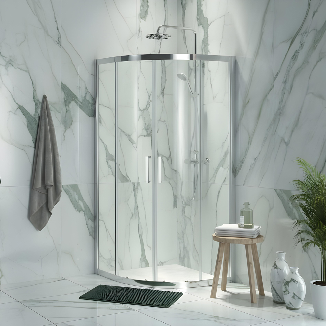 The Atti quadrant enclosure features 6mm toughened safety glass for superb strength and double rollers for a smooth opening and closing action. The magnetic seal ensures the doors stay shut and watertight, while the polished aluminium profile complements any bathroom décor. Quadrant shower enclosures are the perfect space saving solution for small bathrooms, or larger bathrooms where you would like a separate bath and shower.