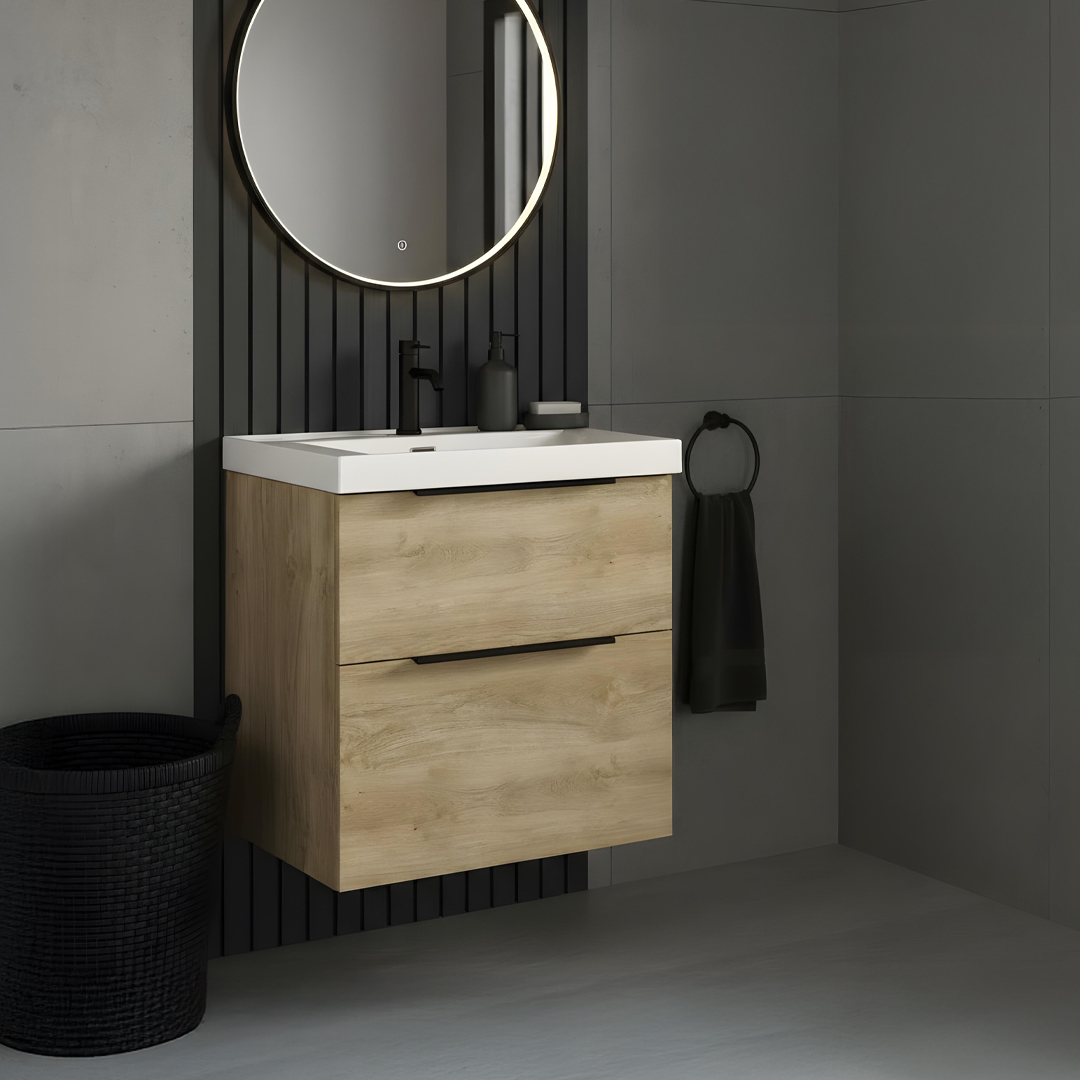 Adare 600mm Wall Hung Vanity Unit In Natural Oak – White Basin