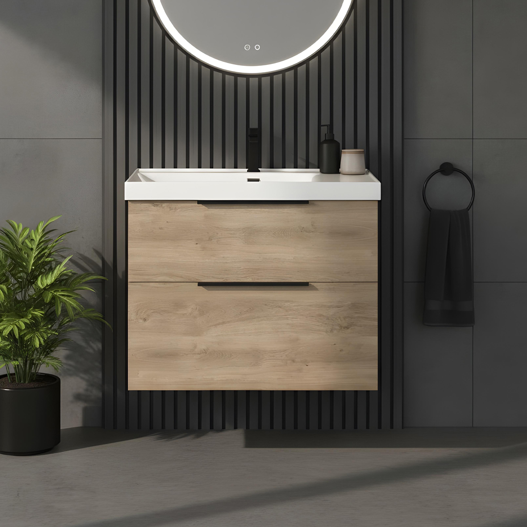 Adare 800mm Wall Hung Vanity Unit In Natural Oak – White Basin