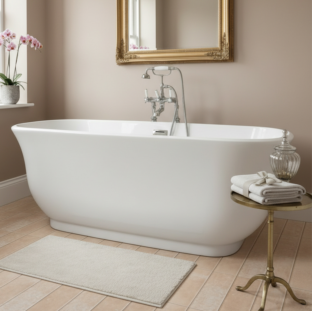 Make a style statement with the sumptuous Clodagh Freestanding Acrylic Bath from Atti Bathrooms. Its clean white finish will make this stunning bath the centrepiece of your bathroom. The gently sloped sides offer a comfortable bathing experience and the internal depth will allow for a deep and relaxing soak.